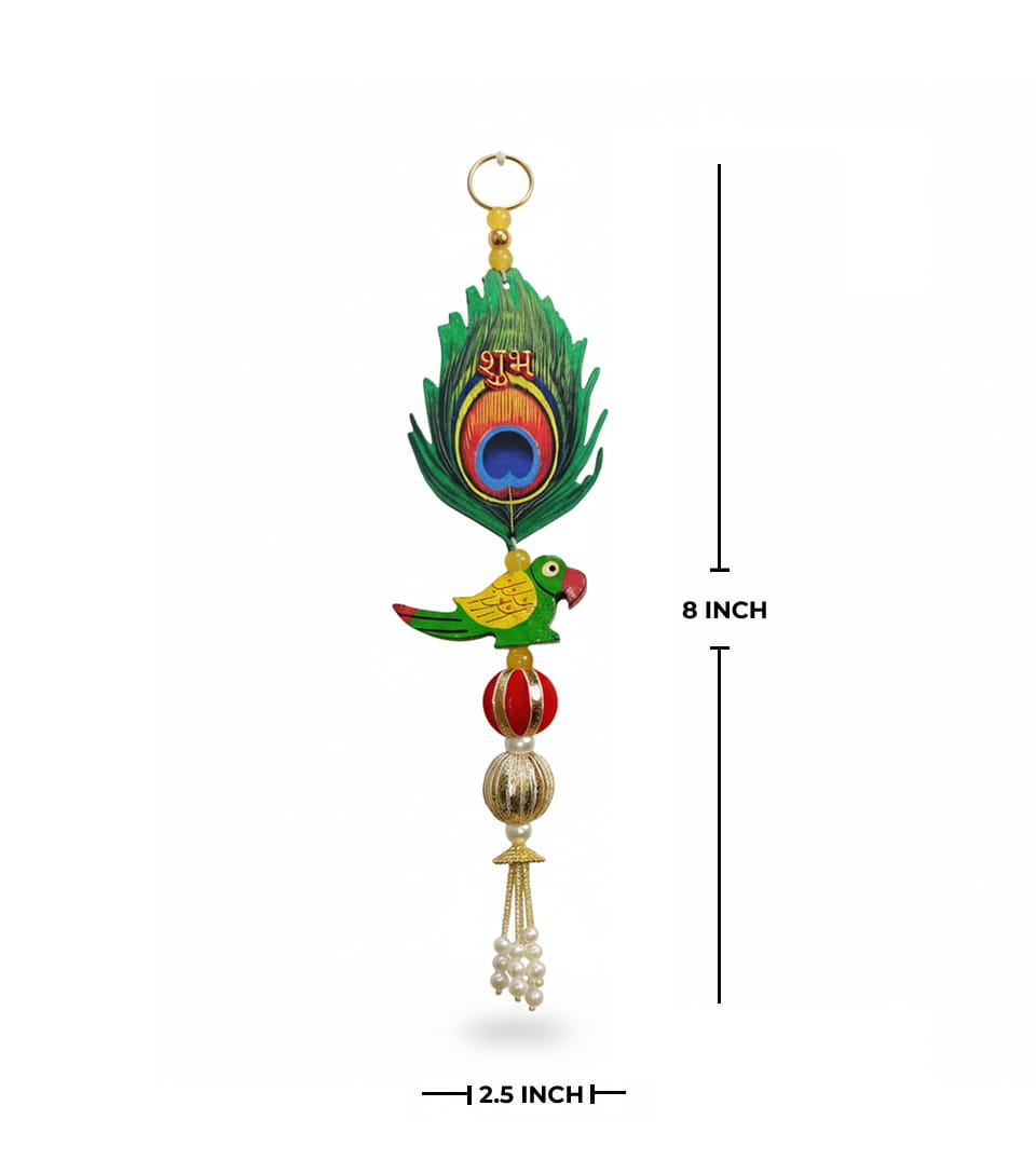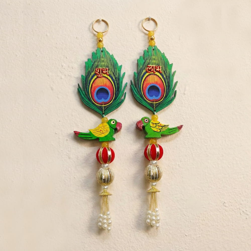 Invite prosperity and positive energy into your home with this beautifully crafted MDF Peacock Parrot Shubh Labh Hanging – Set of 2. Designed with vibrant peacock feather detailing, colorful parrot accents, and traditional Shubh Labh text, this decorative hanging enhances the beauty of your main entrance.